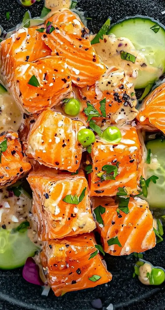 - Generously cascade the prepared Bang Bang sauce over the sizzling salmon bites, presenting additional sauce alongside for adventurous diners seeking extra flavor intensity.