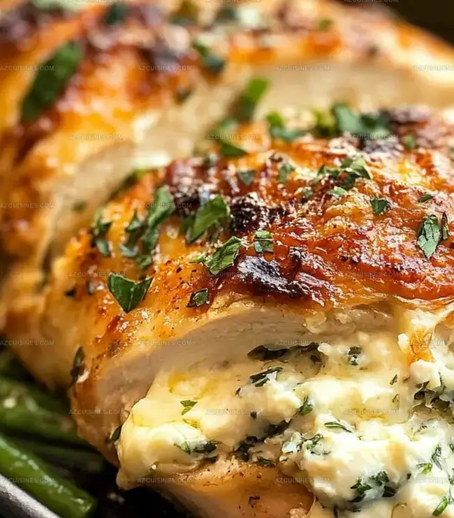 Soft herbed cheese nestles perfectly inside tender meat, creating an elegant dinner option.