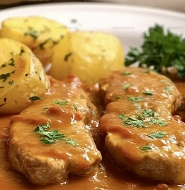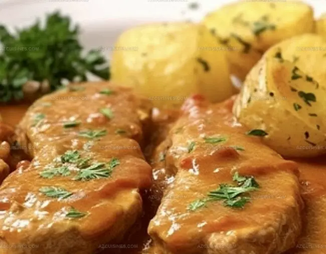 - Gently return the pork to the skillet, nestling it among the vegetables and sauce.