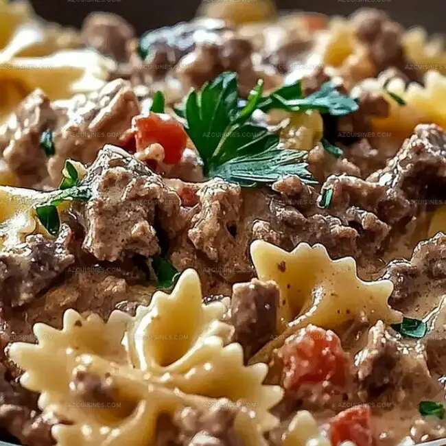 Comforting classic Creamy Beef and Bowtie Pasta brings hearty Italian-American flavors to dinner tables with rich, satisfying ingredients. Succulent ground beef and tender pasta merge in a silky sauce that promises delicious warmth for hungry families seeking quick, memorable meals.