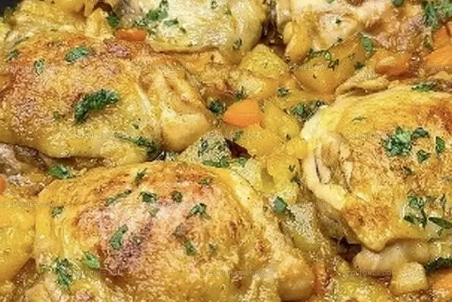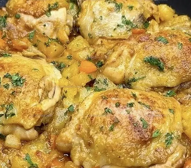 - Gently reintroduce chicken thighs into the skillet, nestling them among the vegetable ensemble.