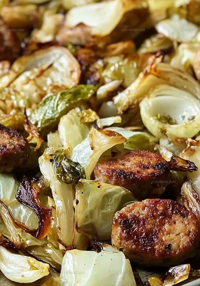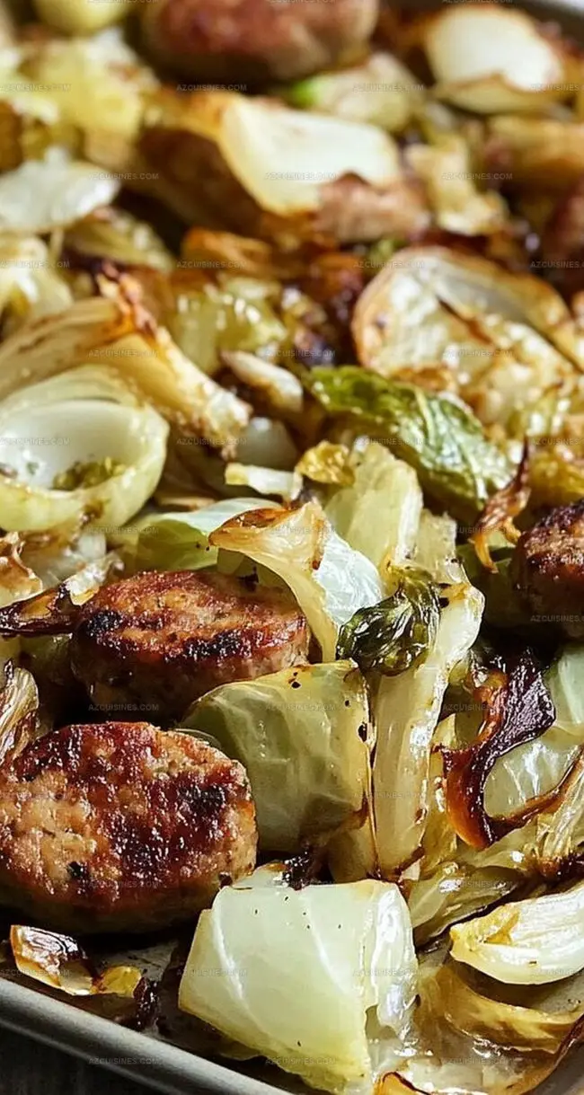 Crispy, golden sheet pan chicken sausage dances alongside tender roasted cabbage, creating a meal that promises pure comfort.
