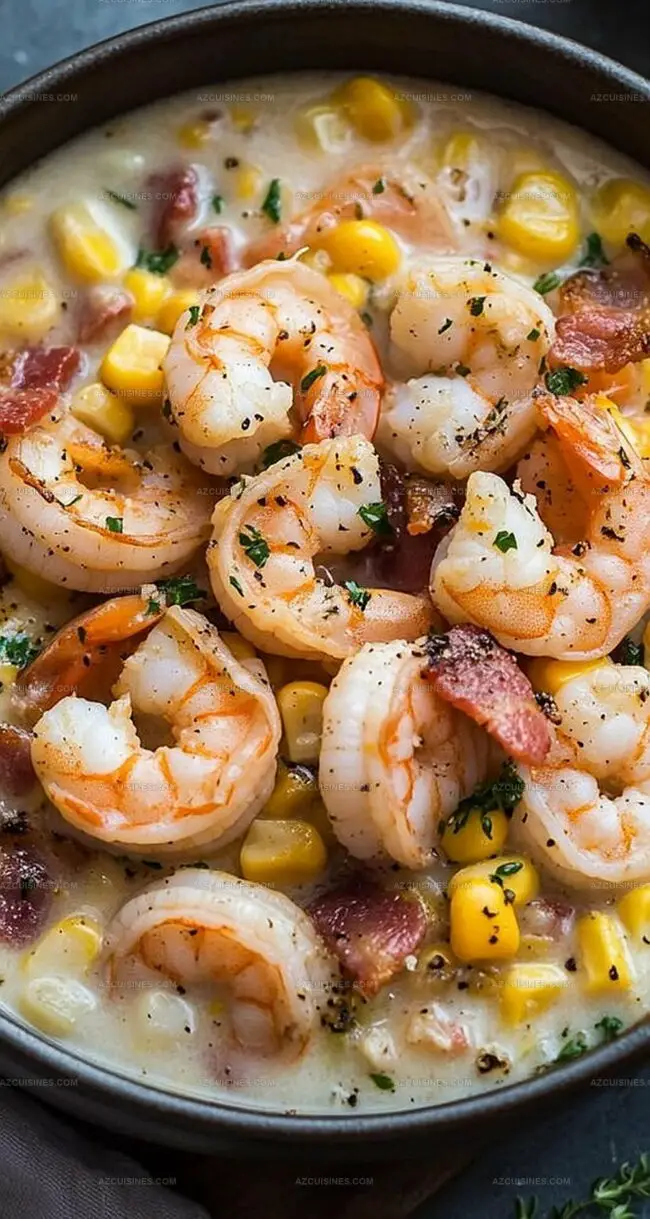 The Heartiest Shrimp Corn Chowder with Bacon Recipe Ever Made